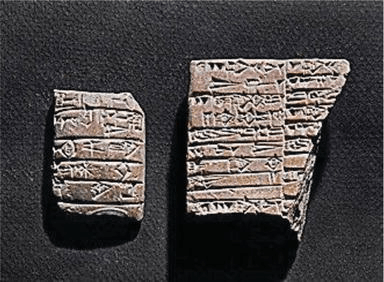 Terracotta tablets inscribed with the records of goatherds (left) and cowherds (right), unearthed at Lagash, Mesopotamia, and dated to 2250–2175 B.C.E. 4
